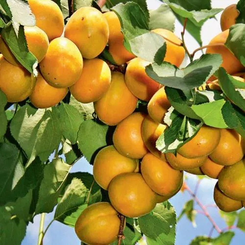 Саженцы абрикоса Брянский ранний — это среднерослые деревья, высотой от 3 до 5 метров. С округлой кроной, они прекрасно вписываются в любой садовый ландшафт. Этот сорт отличается высокой урожайностью, обеспечивая урожай до 20 кг с одного дерева. Важно отметить, что абрикосы начинают плодоносить уже на 3-4 год после посадки.
