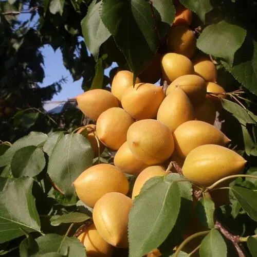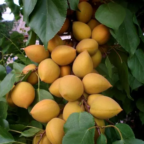 - Яйцевидной, с сильно вытянутым мыском, формы, яркого оранжевого цвета, покрыты сильным опушением. Мякоть средне плотная и сочная, оранжевого цвета. Косточка большая, сладкая, легко извлекается;