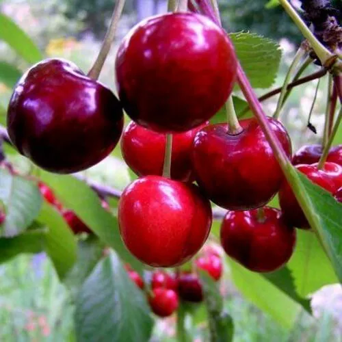 - Широкоокруглой формы, тёмно-красного цвета, сухого отрыва. Мякоть красного, а сок светло-красного, цвета, плотная и сочная. Косточка овальной, с острой верхушкой, формы, светло-коричневого цвета;